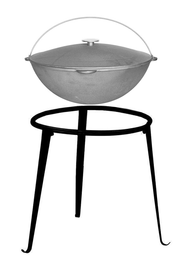 - Mit Deckel aus Gusseisen. Kapazität von 12 L, Durchmesser: ca. 40 cm, Höhe ca. 17 cm, Wandstärke: ca. 3,5 mm, Gewicht:ca. 9 kg.