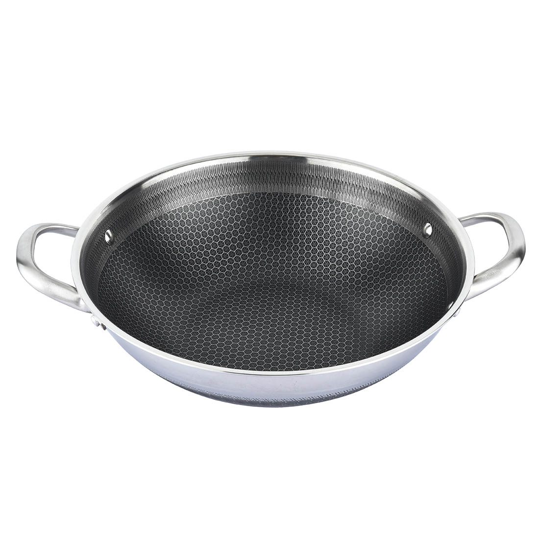 Die Pfanne besteht aus hochwertigem massivem Edelstahl und verfügt über eine wabenförmige Struktur, die kratzfest ist.