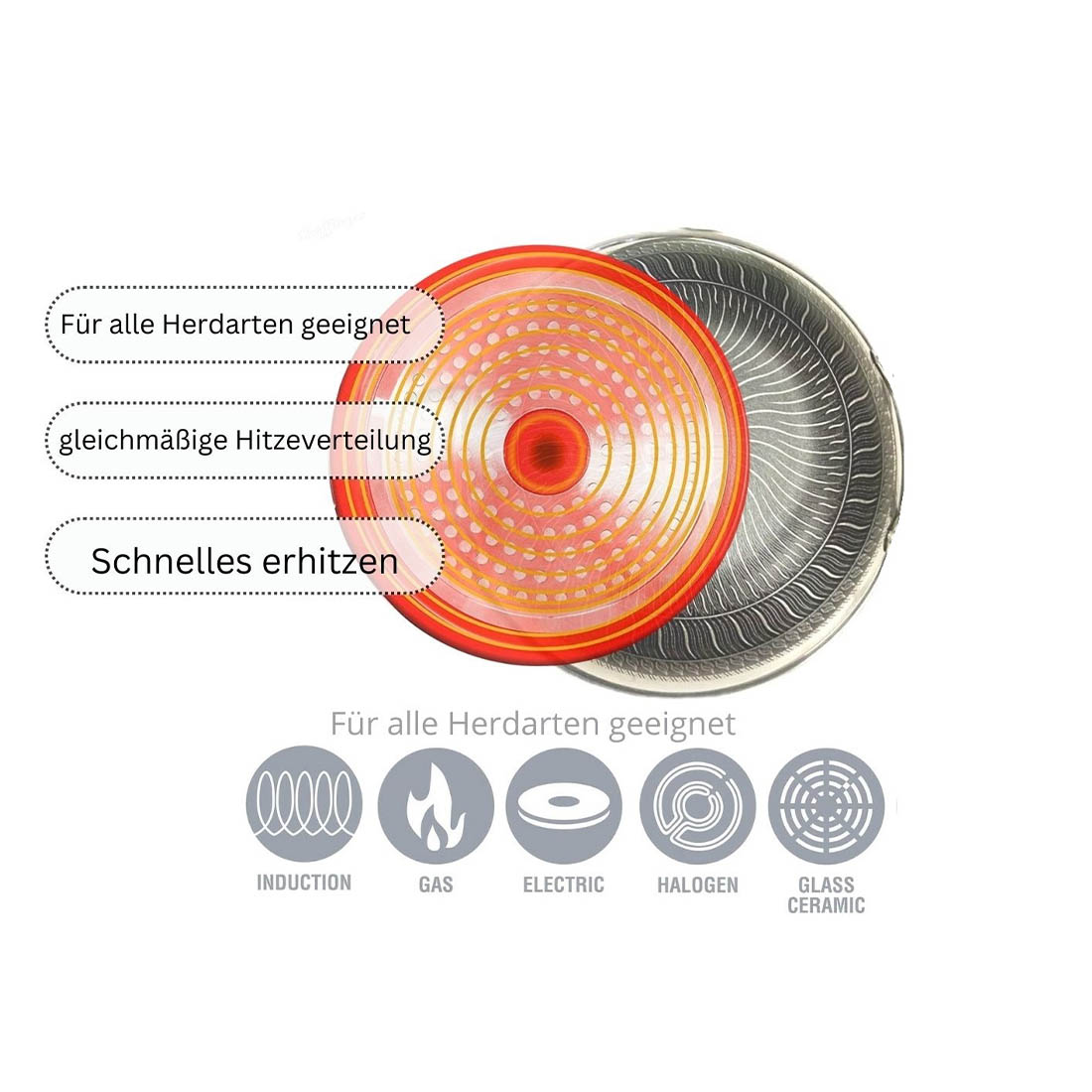 - Geeignet für alle Herdarten, auch für Induktionskochfelder